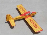 This is pylon racer/sport aerobatic model. It is called the Flea and was built from a kit offered by Diversity Model Aircraft (no longer in business). The model is powered with a Graupner Speed 300 electric motor. It has excellent performance and does great aerobatics. It has a wing span of 31" and weighs 13 ounces ready to fly. A more complete review of this model can be found at the