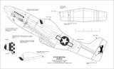 To make sure the plan can be printed on all printers, it has been broken into three sheets. The first sheet is 14" x 8.5" (legal size) and the others are 8.5" x 11" (letter size). Printed tissue art work for the model shown in the photo is provided consisting of one legal size sheet and one letter size sheet. Also provided is printed tissue art work for the EAA P-51 of Paul Poberezny. This material was provided by H.G. Frautschy. One legal size sheet and two letter size sheets.