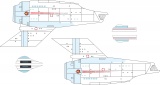Markings of VF-76, USS Hornet. The plan shows markings for ace Cdr David McCampbell.