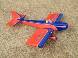 This is a North American AT-6 Texan from Fantastic Models. The company is no longer in business. It has a 31.5" wing span. The model is assembled from molded foam components. Power comes from the common GWS IPS DX-A motor/gear drive (Lite Stik). Flying weight is in the 7 ounce range. Using a two cell lithium polymer batter pack (2s), the model can be used for small field racing or sport aerobatics. The kit is set up for elevator, ailerons, and throttle. The model in the picture also has an operational rudder. It is a nice flyer providing long flights on a 1200 mah LiPo pack. The markings on the model in the picture were made using ink jet printer decal paper.