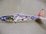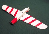 DJ Aerotech "Roadkill" series kit around 2001. That kit is no longer available. It is a profile model with a 20.75" wing span. This type of model is intended to be flown indoors (school gyms and related type facilities), or in very calm conditions outside. The model is covered with tissue paper that has been colored with an ink jet printer (the colored tissue is not included in the kit). Total flying weight is 80 grams (2.82 ounces). It uses 6 50 mah cells for power. The motor, gear drive, and propeller are included in the kit.
