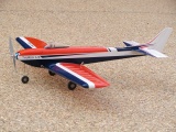 This is pylon racer/sport aerobatic model. It is called the Flea and was built from a kit offered by Diversity Model Aircraft (no longer in business). The model is powered with a Graupner Speed 300 electric motor. It has excellent performance and does great aerobatics. It has a wing span of 31" and weighs 13 ounces ready to fly. A more complete review of this model can be found at the