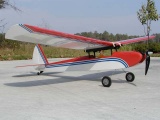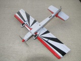 This is an original design called the Turnaround 325. It has a 43.5" wing span and 325 square inches of wing area. It is powered with a 180 watt motor turning a 10x7 prop. Energy comes from a three cell 2100 mah lipo battery pack. The model has a flying weight of 26 ounces. The model is intended for non 3D style aerobatics and can be flown in smaller flying sites like parks and soccer fields. Covering is silver Coverlite with red Microlte trim. This model is now available as a kit from