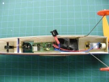 In addition to the 404 Interceptor, Jim Walker also introduced another model that would become an everlasting classic -- the Hornet. This model is a rubber powered Free Flight that introduced many youth to the world of model aviation back in the 50's. Prior to his passing, and very nice reproduction was offered by Frank Macy. Paul decided to convert one of the reproduction models to radio control. This was done using a micro RFFS-100 receiver from Dynamic Web Enterprises (no longer in business) and two standard magnetic actuators from